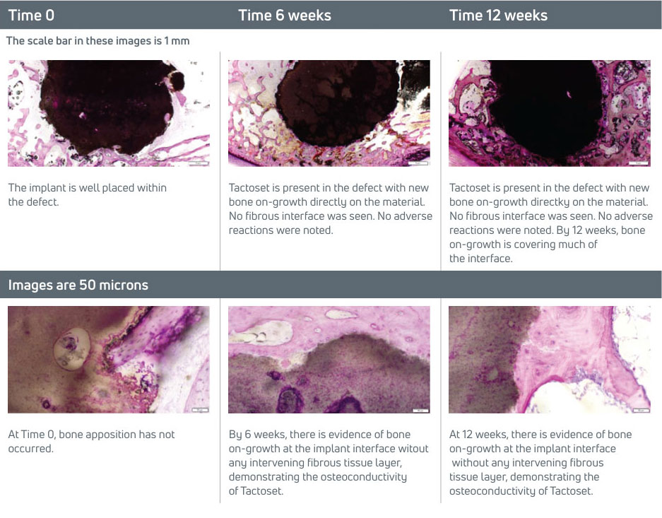 In a pre-clinical study, the in vivo performance of Tactoset was evaluated in cancellous bone defects.