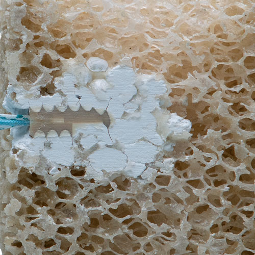 - Interdigitates into trabecular bone architecture to fill closed bone voids1,4